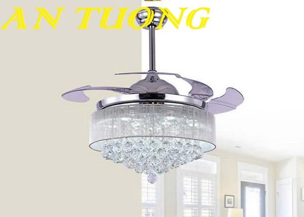 Quạt trần đèn pha lê giấu cánh decor trang trí phòng khách - phòng ngủ đẹp 002