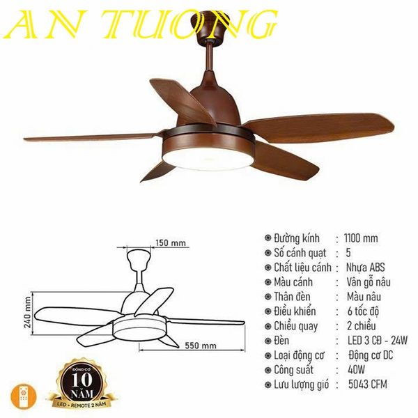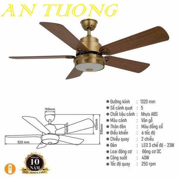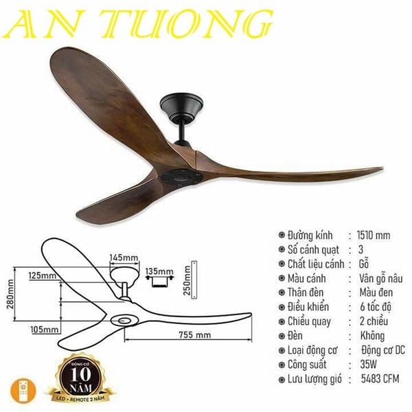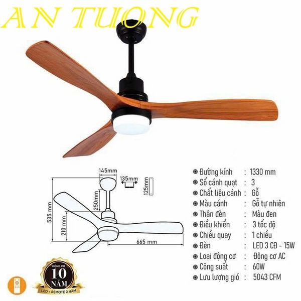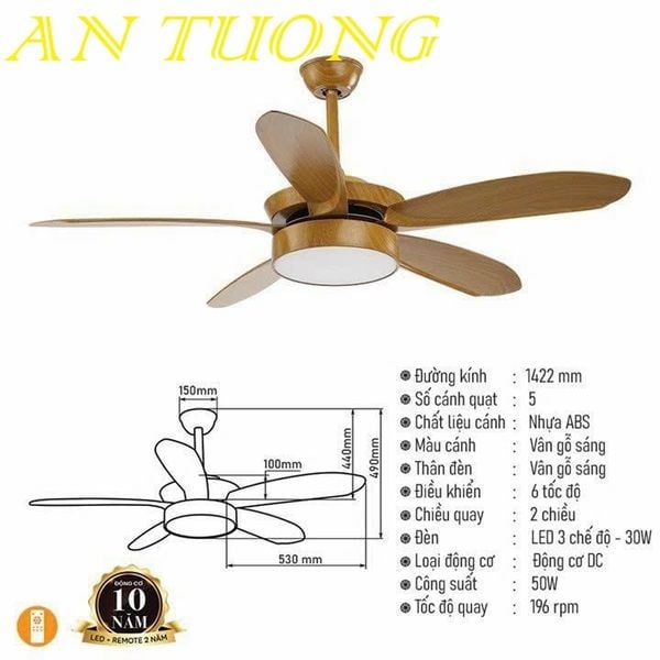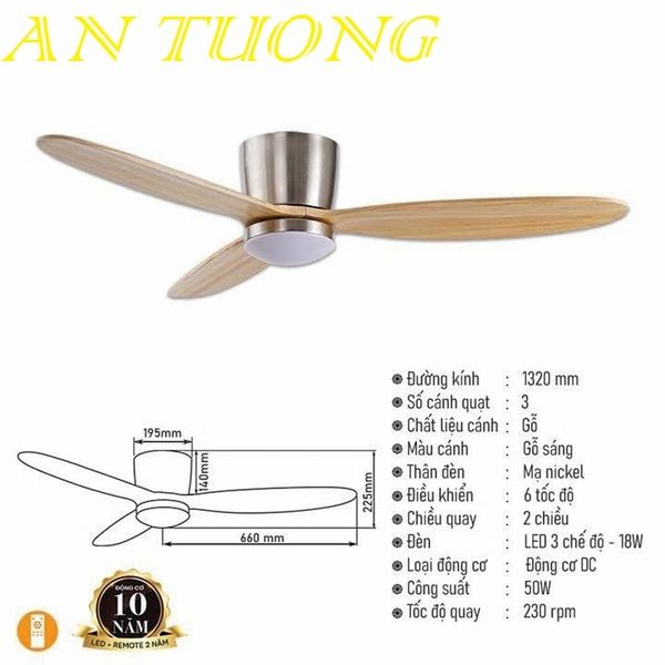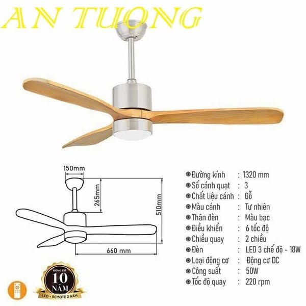 - Cánh quạt bằng nhựa ABS hoặc gỗ tự nhiên cao cấp.