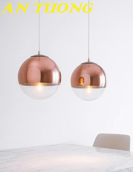 Đèn thả bàn ăn thủy tinh màu hồng gương decor trang trí phòng bếp ăn 013
