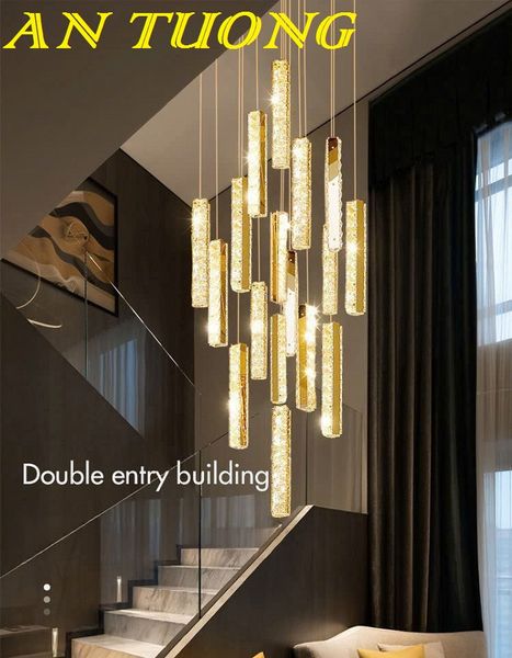 Đèn thả thông tầng cầu thang pha lê cao cấp sang trọng 009
