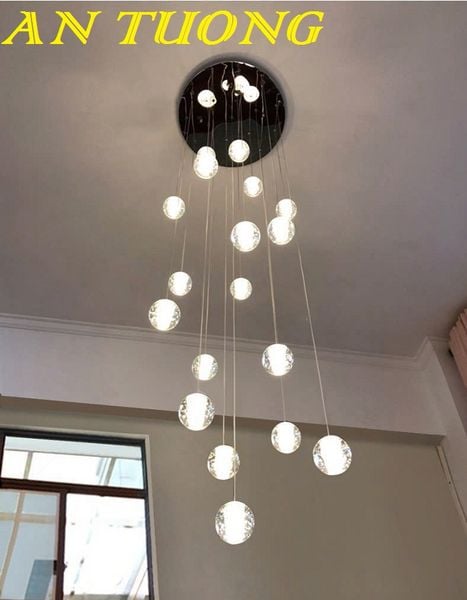 đèn thả trần thông tầng cầu thang giếng trời kiểu pha lê giọt nước đẹp, hiện đại, giá tốt 0030