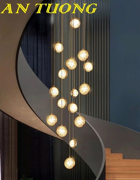 Đèn thả thông tầng pha lê giọt nước trang trí cầu thang hiện đại 013