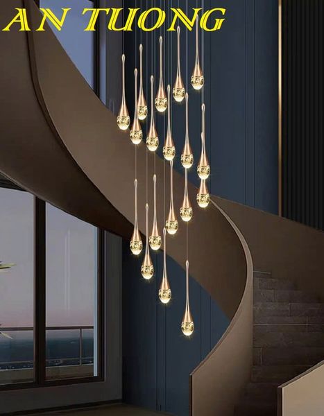 Đèn thả thông tầng pha lê giọt nước trang trí cầu thang hiện đại 013