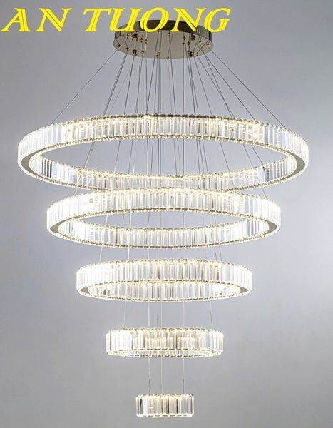 Đèn thả trần phòng khách 5 vòng pha lê cao cấp hiện đại 017 xếp tầng