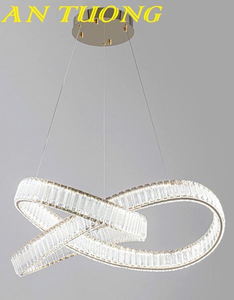Đèn thả 2 vòng tròn pha lê trang trí phòng khách đẹp, hiện đại 0311