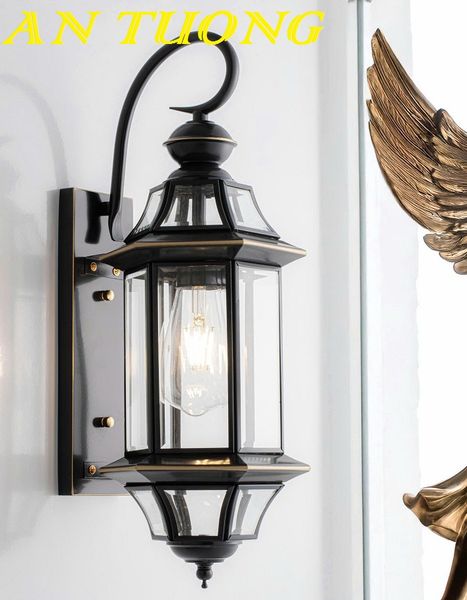 đèn trang trí ngoài trời treo vách tường ngoài trời bằng đồng cổ điển 018 size trung